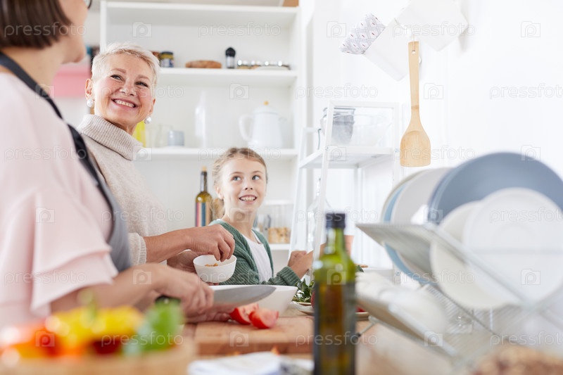 Счастливая семья, готовящая вместе