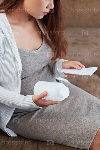 Беременная женщина держит контейнер с добавками