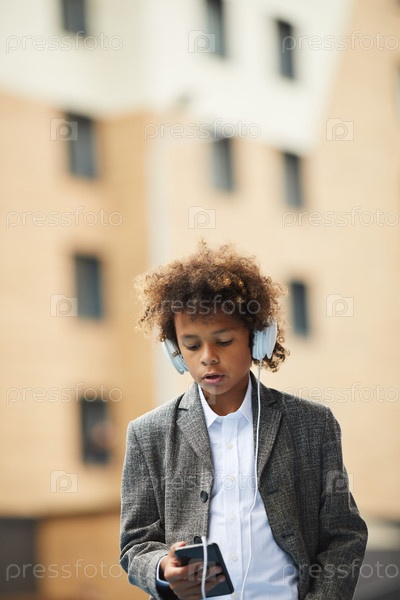 Школьник, разговаривающий по мобильному телефону