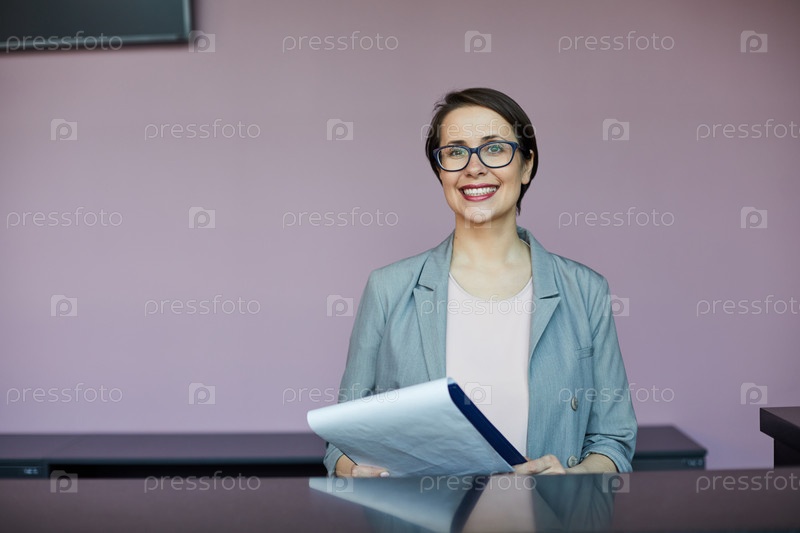 Счастливая красивая женщина проходит собеседование с рекрутером