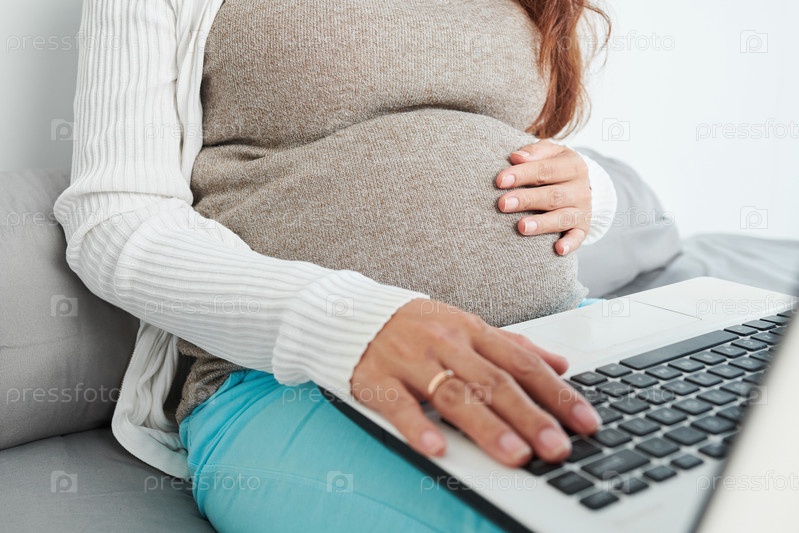 Женщина прикасается к своему ребенку, который пинает в утробу
