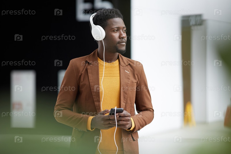 Задумчивый чернокожий мужчина в вестибюле