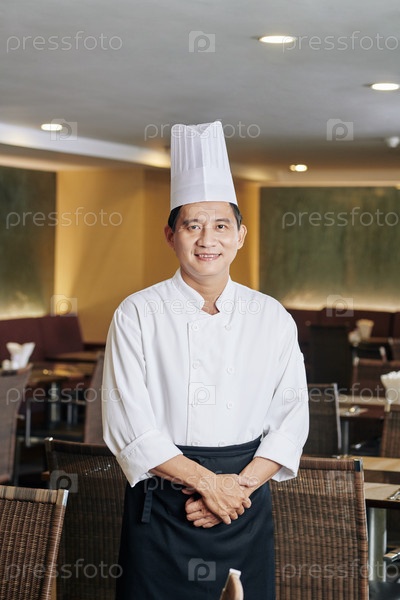 Азиатский шеф-повар в своем ресторане