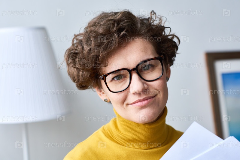 Кудрявая бизнесвуменка в очках
