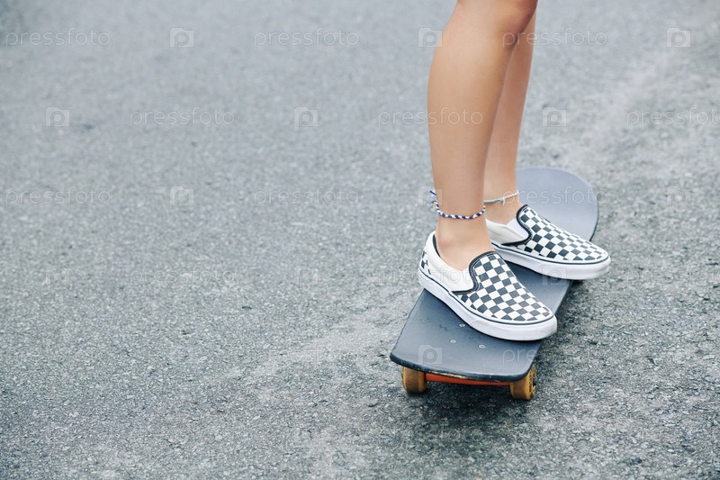 Девушка едет на скейтборде