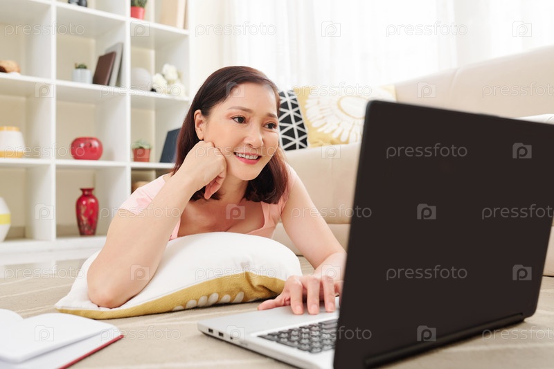 Зрелая женщина смотрит вебинар