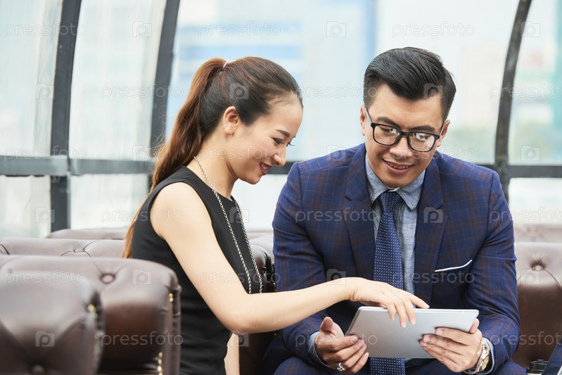 Бизнесмены с цифровыми планшетами