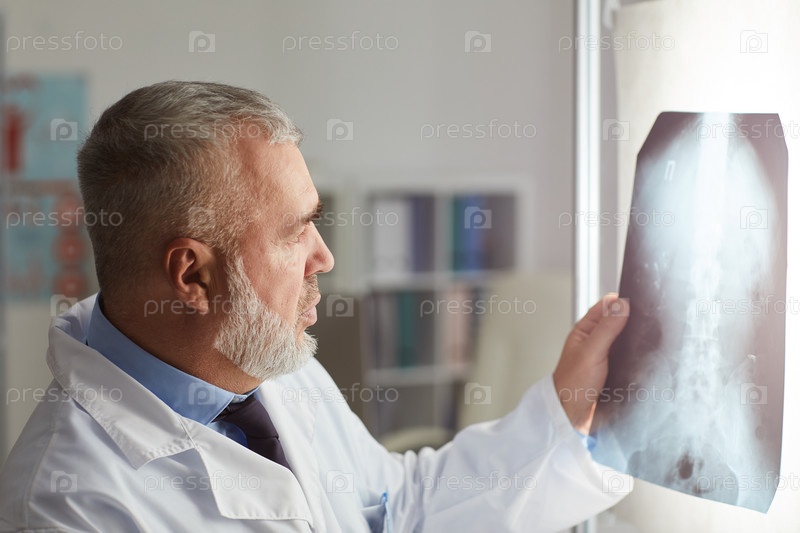 Радиолог, работающий с рентгеновским изображением