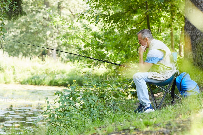 Рыбак с удочкой на открытом воздухе
