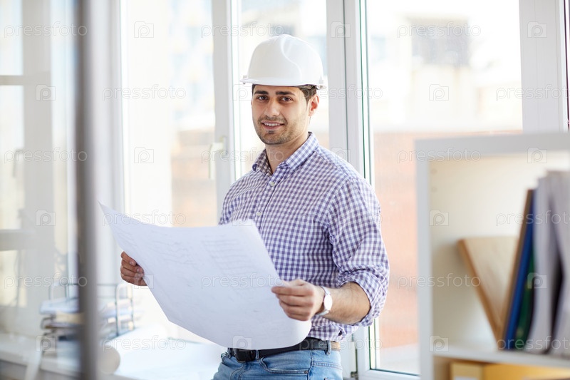 Улыбающийся Ближневосточный инженер Holding Plans