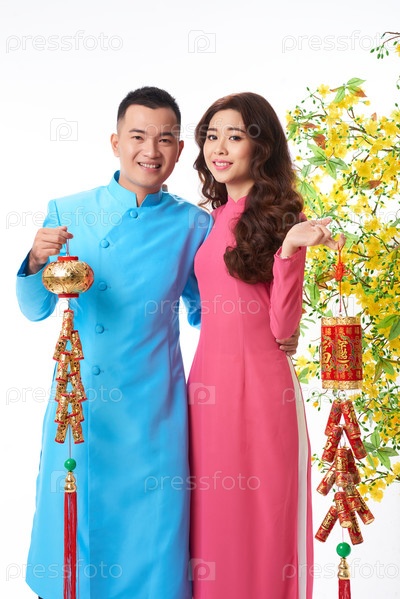 Молодая пара празднует Тэт