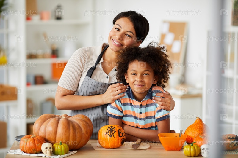Мать позирует с сыном на семинаре Хэллоуина