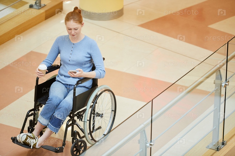 Инвалидная женщина, работающая на телефоне