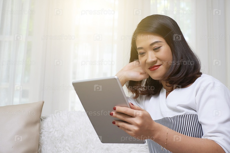 Женщина, использующая планшетный компьютер