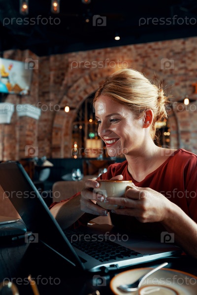 Фрилансерка, работающая в кафе