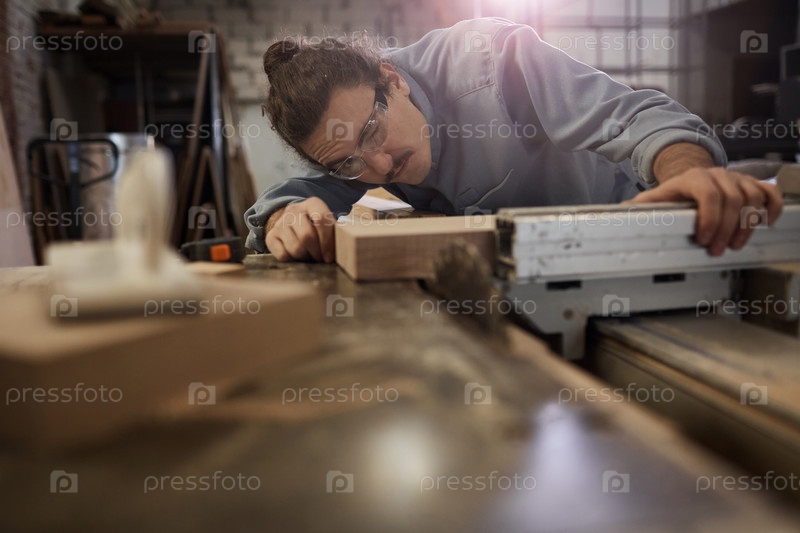 Человек, измеряющий деревянную доску