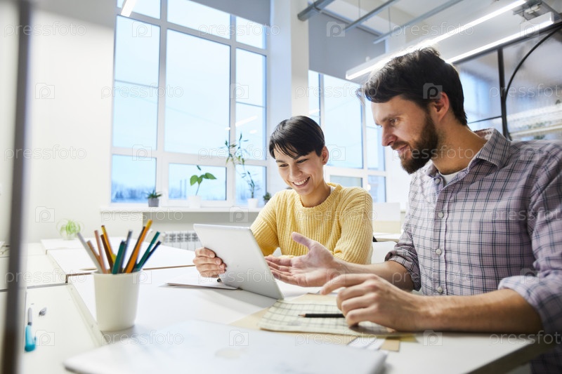 Позитивные коллеги обсуждают интернет-проект