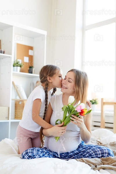 Девушка, целующая маму