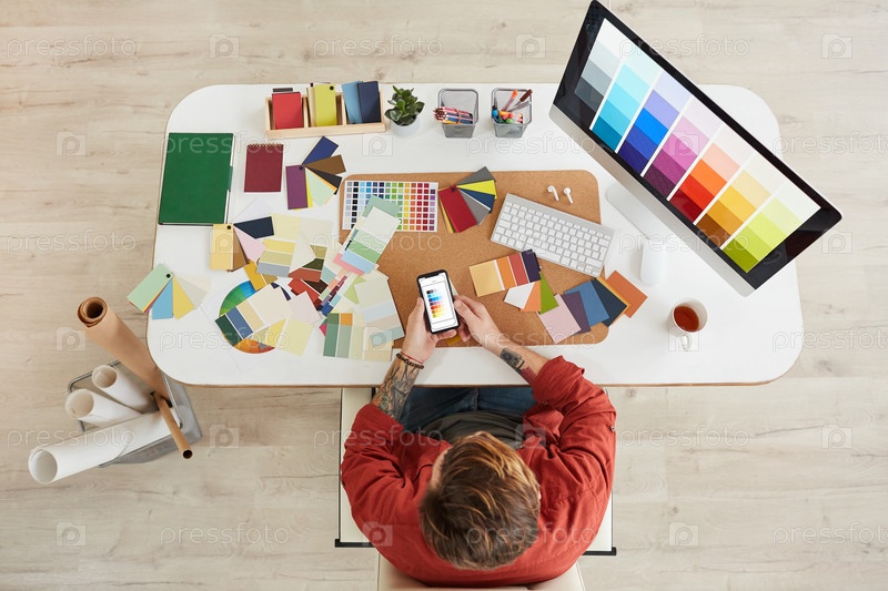 Дизайнер на рабочем месте Above View Male