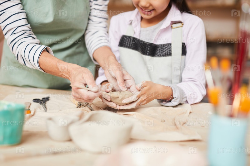 Маленькая девочка, плетущая глину
