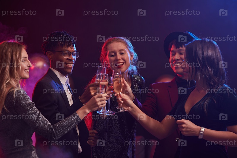 Молодые люди празднуют в ночном клубе