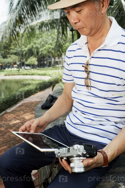 Мужчина работает онлайн на планшетном компьютере
