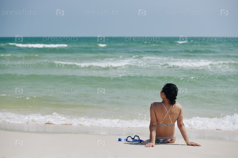 Женщина смотрит на морские волны