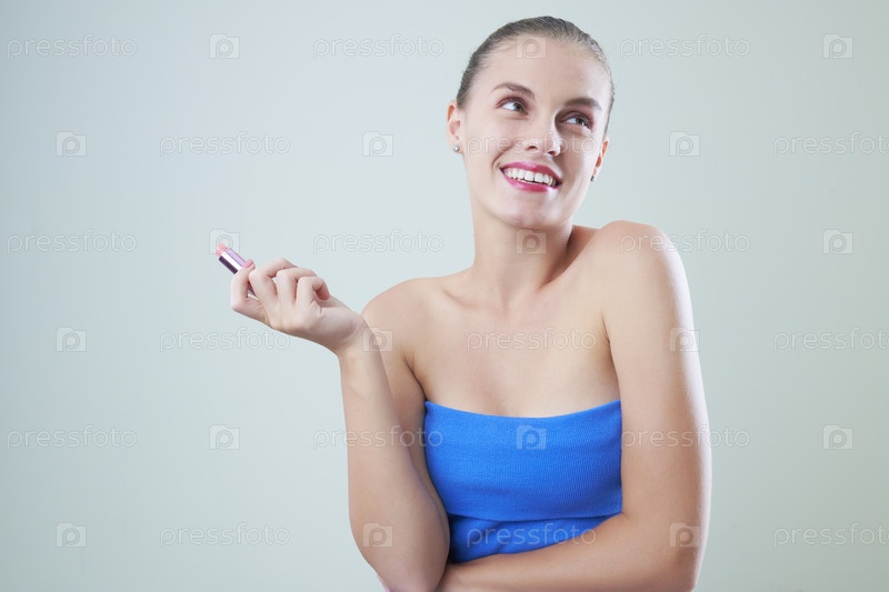 Красивая женщина наносит помаду
