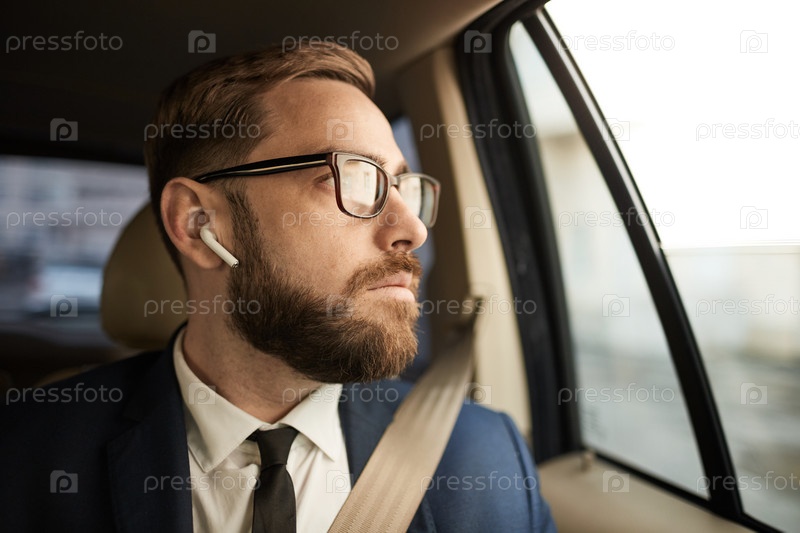 Бизнесмен сидит в такси
