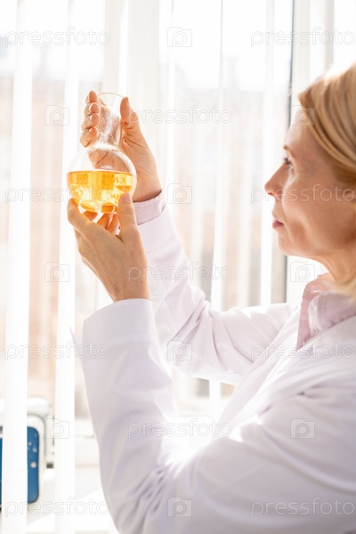 Женщина изучает химическую реакцию