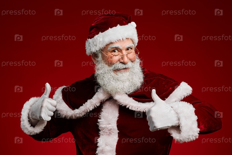 Санта Клаус показывает большие пальцы на красном