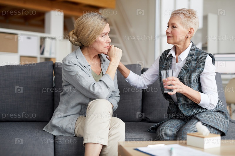 Феминистка-терапевт утешает старшего пациента