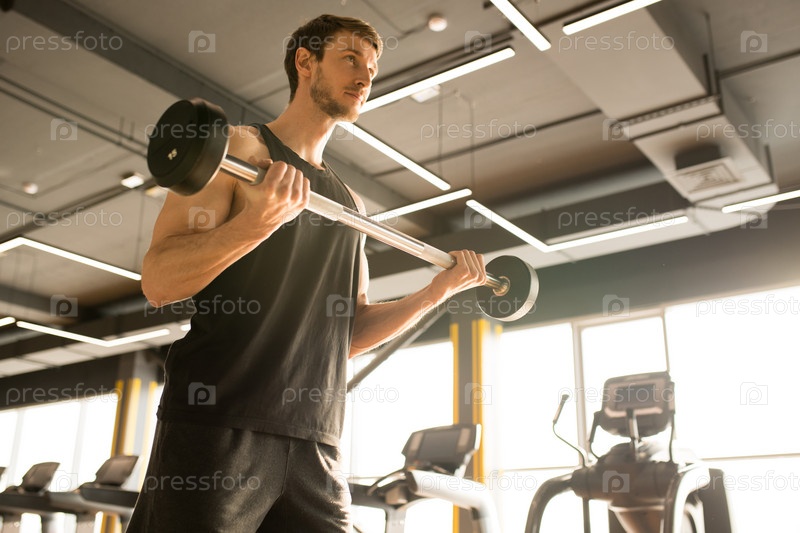 Молодой спортсмен тренируется в тренажерном зале