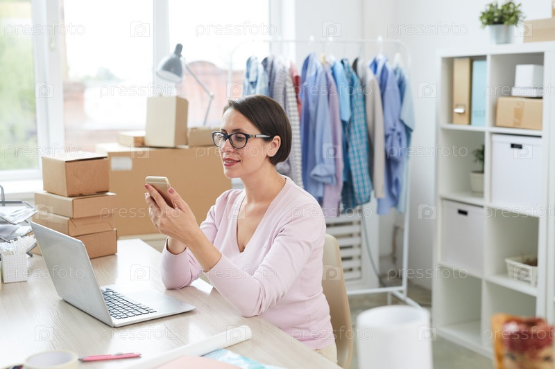 Молодой офисный менеджер использует смартфон для онлайн-заказа