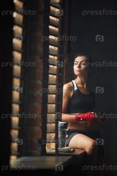 Пенсивная спортсменка на окне