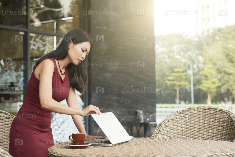 Женщина, открывающая ноутбук для работы