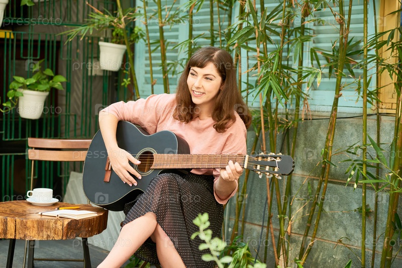Талантливая женщина играет на гитаре