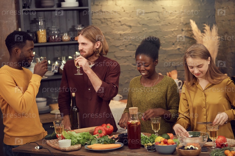 Разнообразная группа людей, наслаждающихся вечеринкой дома