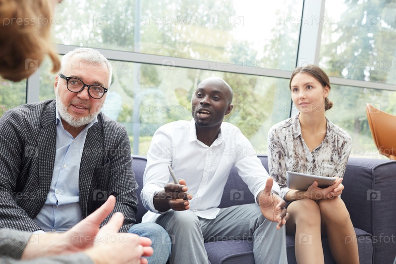 Различные бизнес-люди обсуждают проект