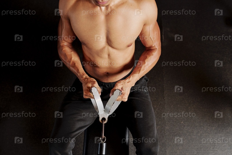 Мускульный мужчина тренируется в спортзале