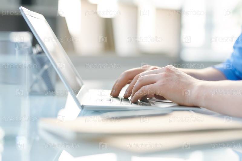 Руки студента или молодого предпринимателя, касающихся клавиш ноутбука