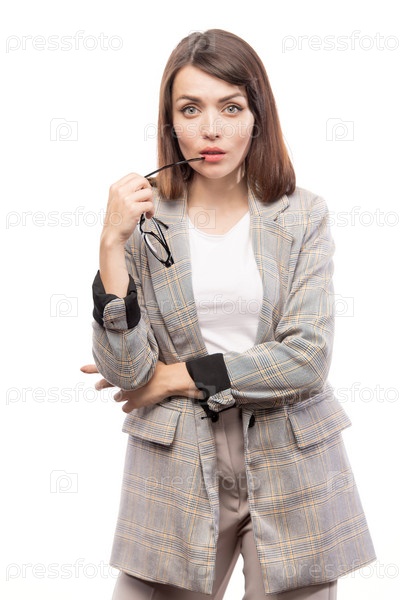 Молодая элегантная учительница или модель моды в формальной одежде