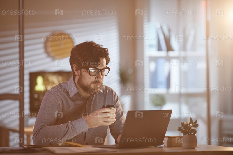 Мужчина, использующий ноутбук на работе