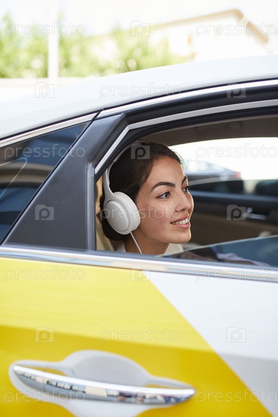 Женщина в такси Побочный вид