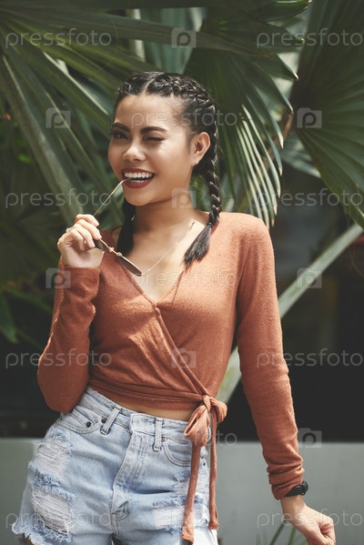 Азиатская женщина позирует перед камерой