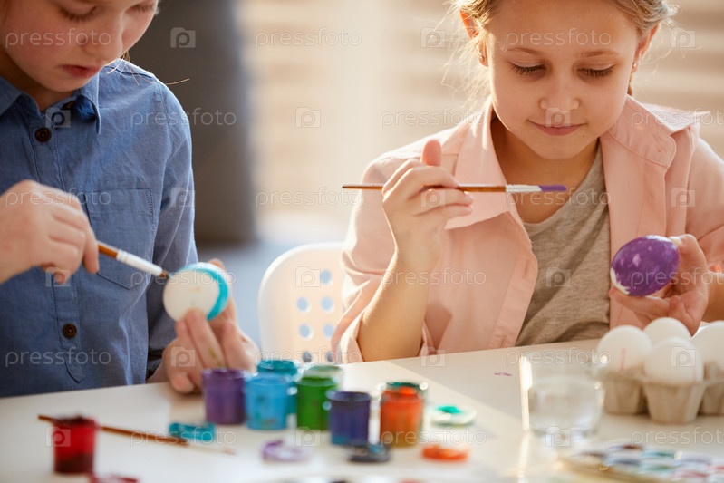 Девочки, украшающие пасхальные яйца