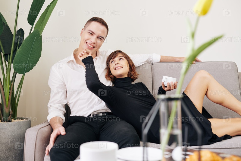 Счастливая влюбленная пара отдыхает дома