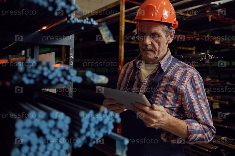 Зрелый бригадир, использующий планшетный компьютер