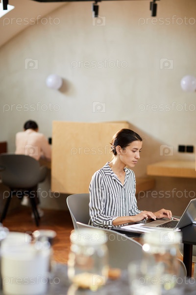 Молодая женщина использует Интернет в кафе