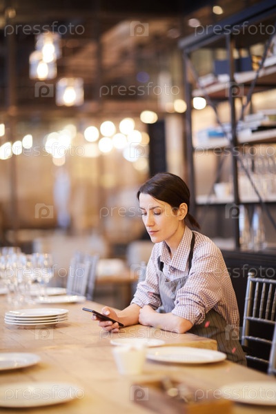 Официантка берет перерыв с работы в ресторане